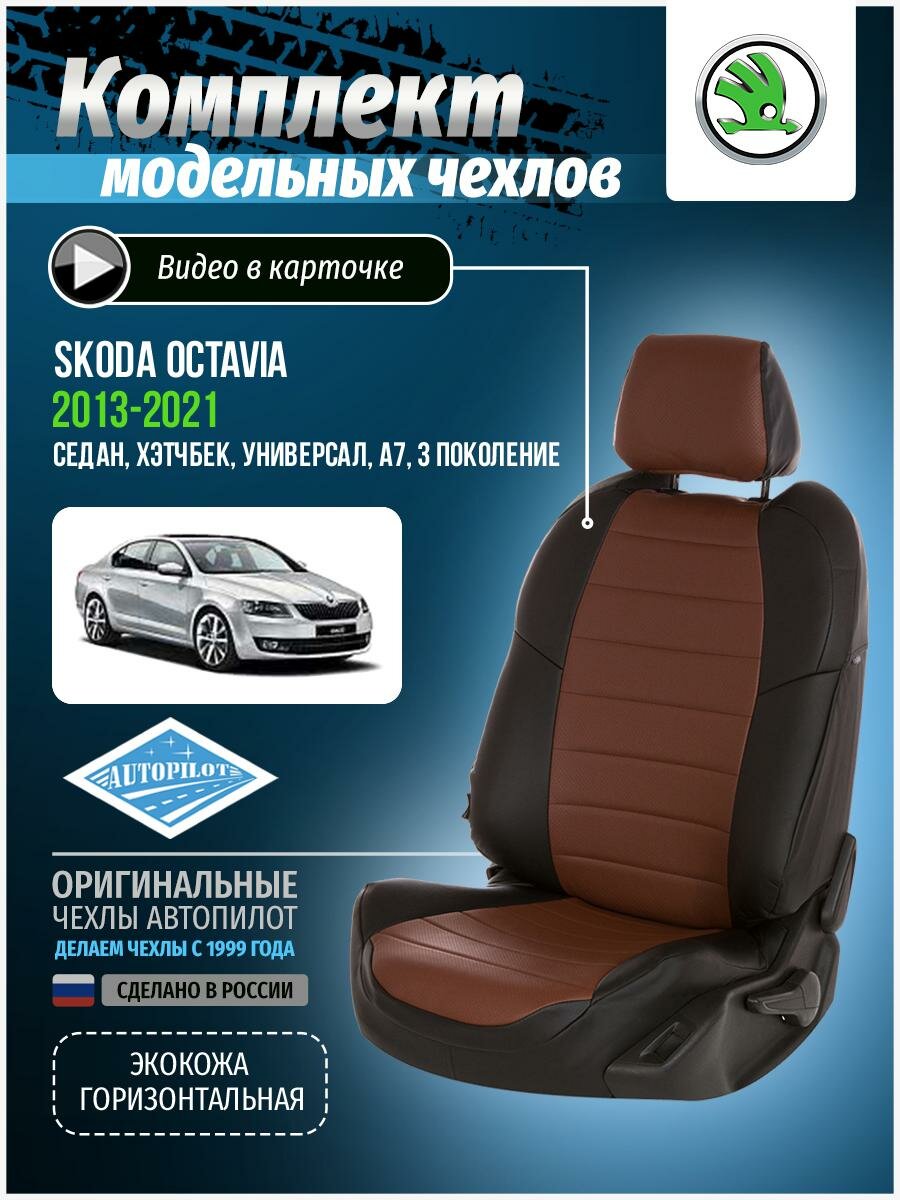 Чехлы для Skoda Octavia 3 A7 2013-2020 Автопилот Шоколадный Экокожа sk-ok-a7a-chesho-e
