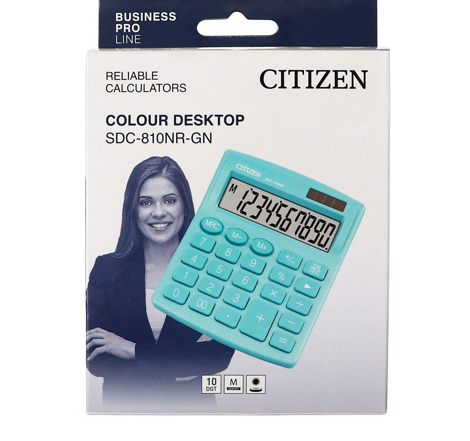 Калькулятор настольный Citizen SDC-810NR-GN, 10 разрядов, двойное питание, 102*124*25мм, бирюзовый И 4560196212558