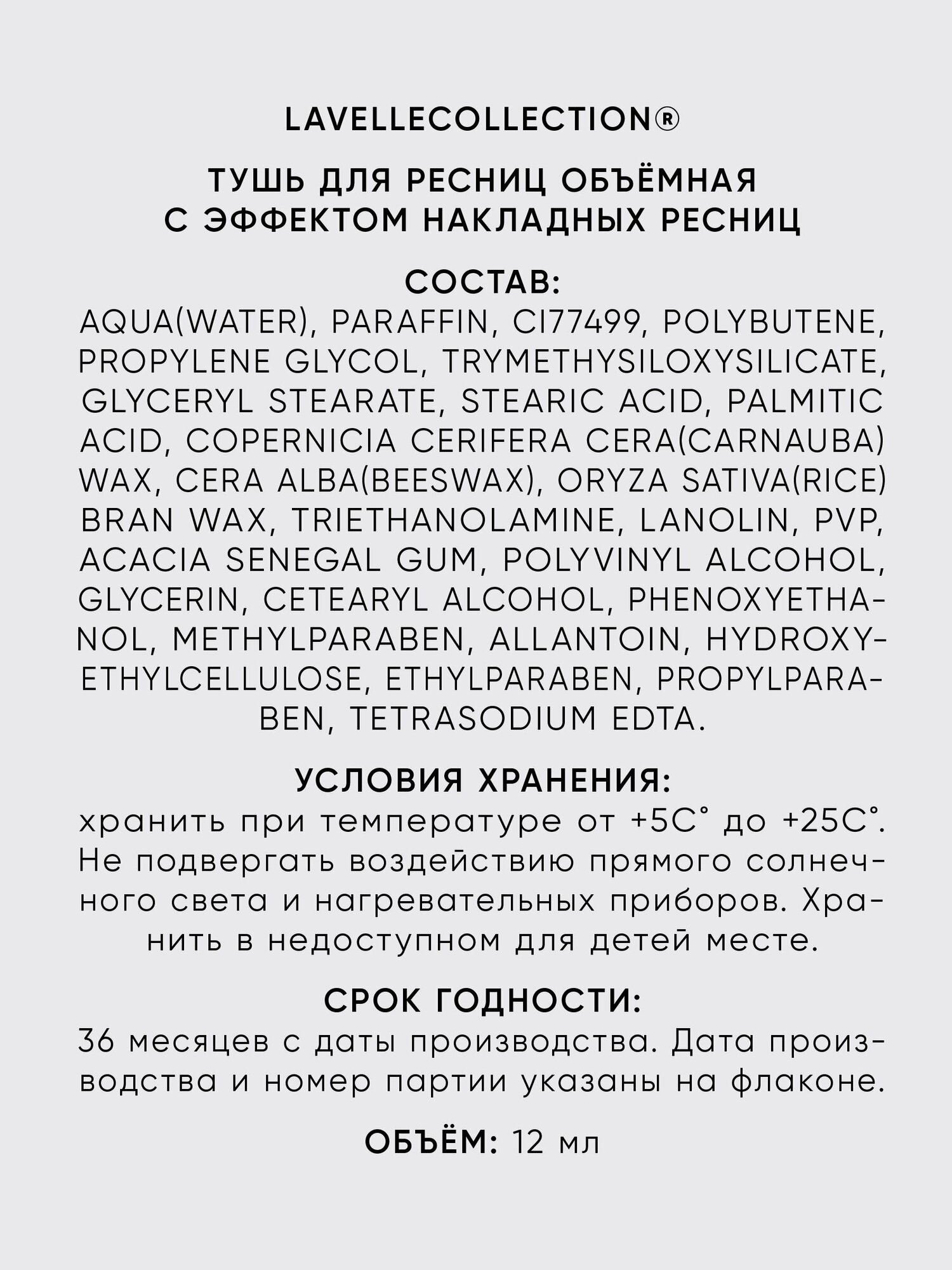 LavelleCollection Тушь для ресниц False Lash Effect, объемная, с эффектом накладных ресниц, 12 мл