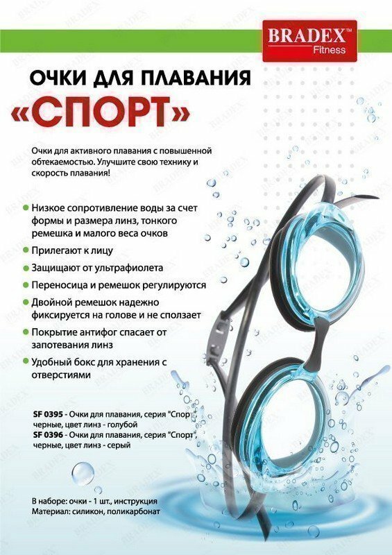 Очки для плавания Bradex, серия "Спорт", черные цвет линзы - голубой .