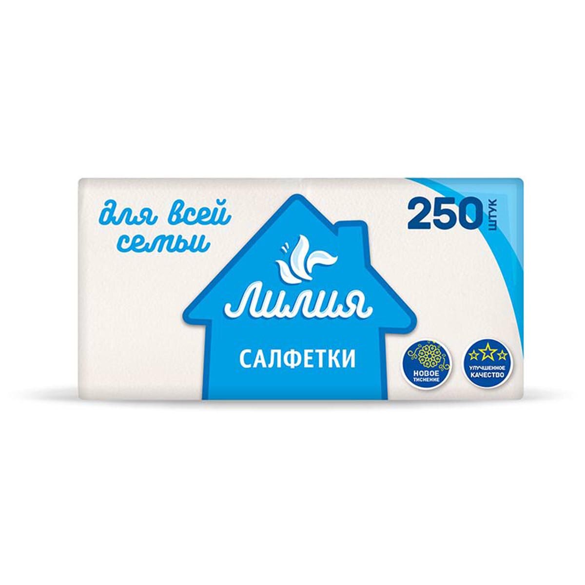 Салфетки Лилия белые однослойные, 250 листов, 1 пачка