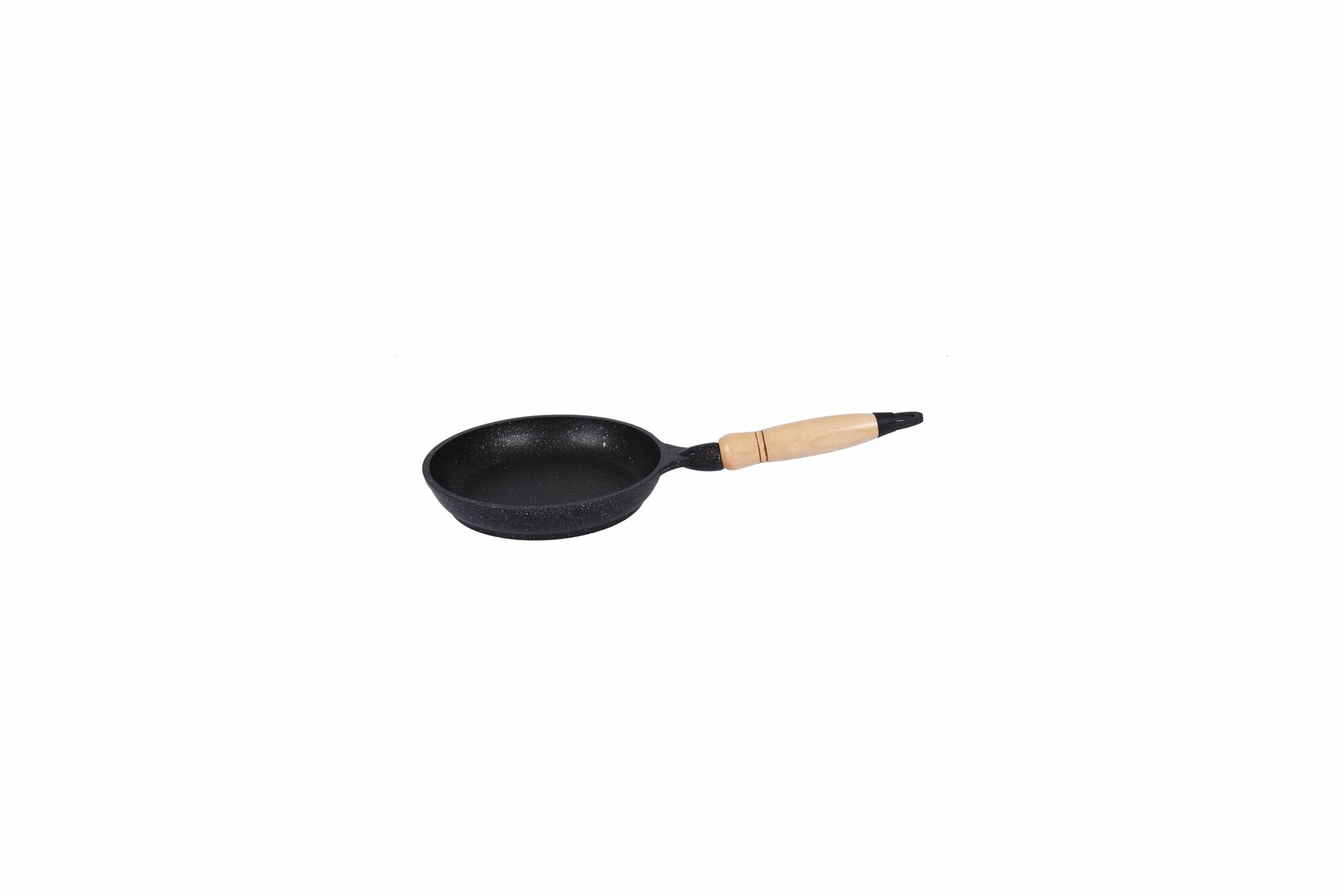 Сковорода d-18 см литая с антипригарным покрытием, с деревчнной ручкой, цвет темный мрамор