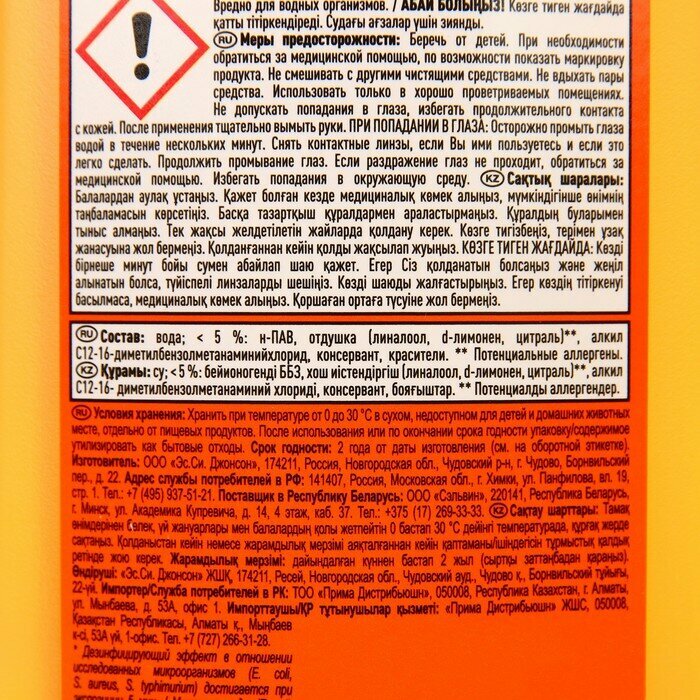 Отличное мытьё Недостатки: Аромат не яркий, упаковка чемь меньше останется будет терять равновесие ибо совершенно плоская Струей воды пенится. Если добавить в воду колпачком, то пену получить практически не возможно ... Ну только если швабра и ведро у вас воду не раскручивают. Моет отлично, полы скрипят и сверкают. А вот аромат немного слабоват и а-ля цитрусовые здесь только чтобы сгладить более химические отдушки. Средство универсальное, мыть можно кафель, раковины ... Кроме дерева, что логично ????? на особо загрязнённые поверхности рекомендуют вообще не разбавлять и оставить под собственным воздействием на 5 минут. |