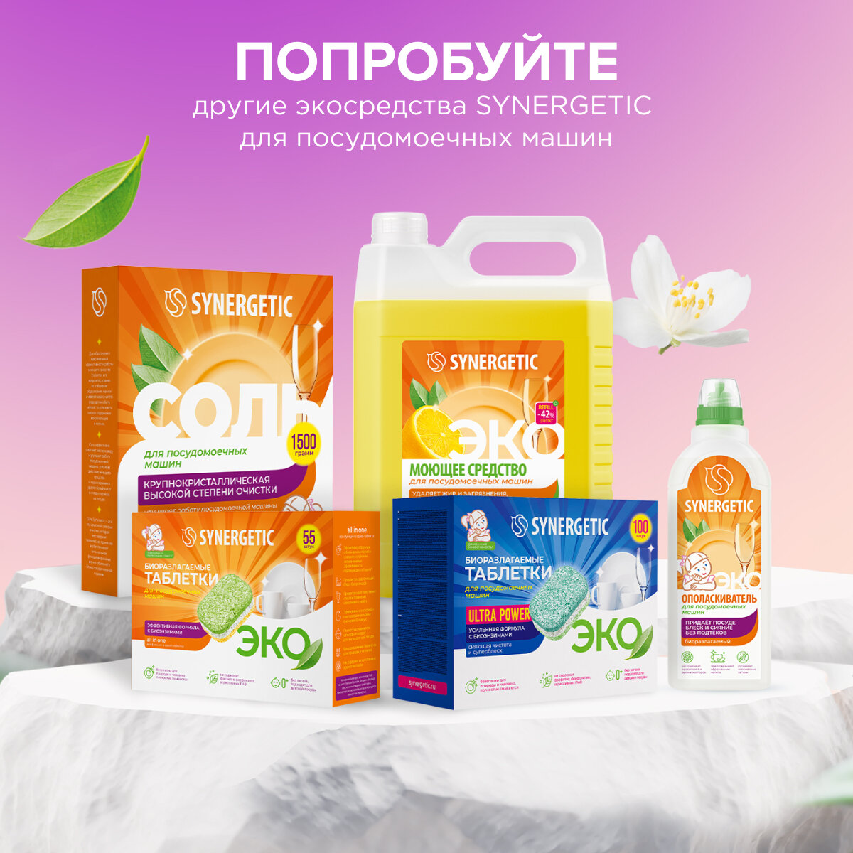 Таблетки для посудомоечной машины SYNERGETIC биоразлагаемые бесфосфатные, 55шт