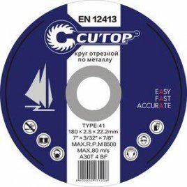 Профессиональный отрезной диск CUTOP 39987т, по металлу и нержавеющей стали Profi Т41-230 х 2.0 х 22.2 мм