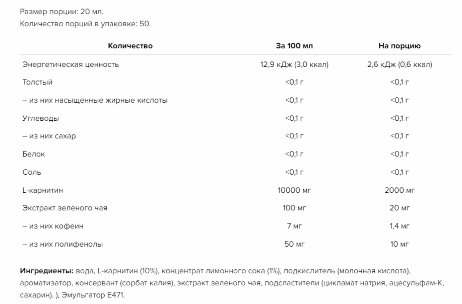 | Минусы: | Относительно небольшое содержание самого л-карнитина. |