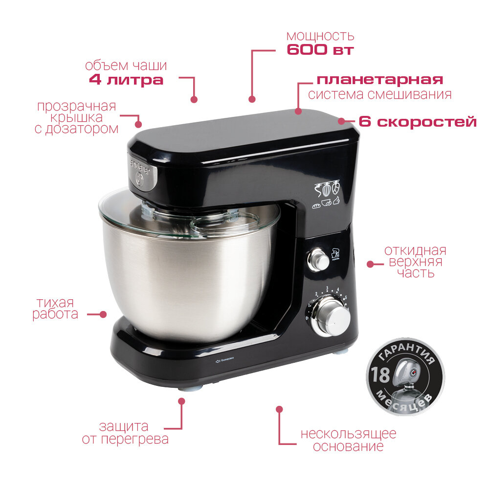 Прочая бытовая техника Endever Планетарный миксер ENDEVER Sigma-22S, черный, 600 Вт