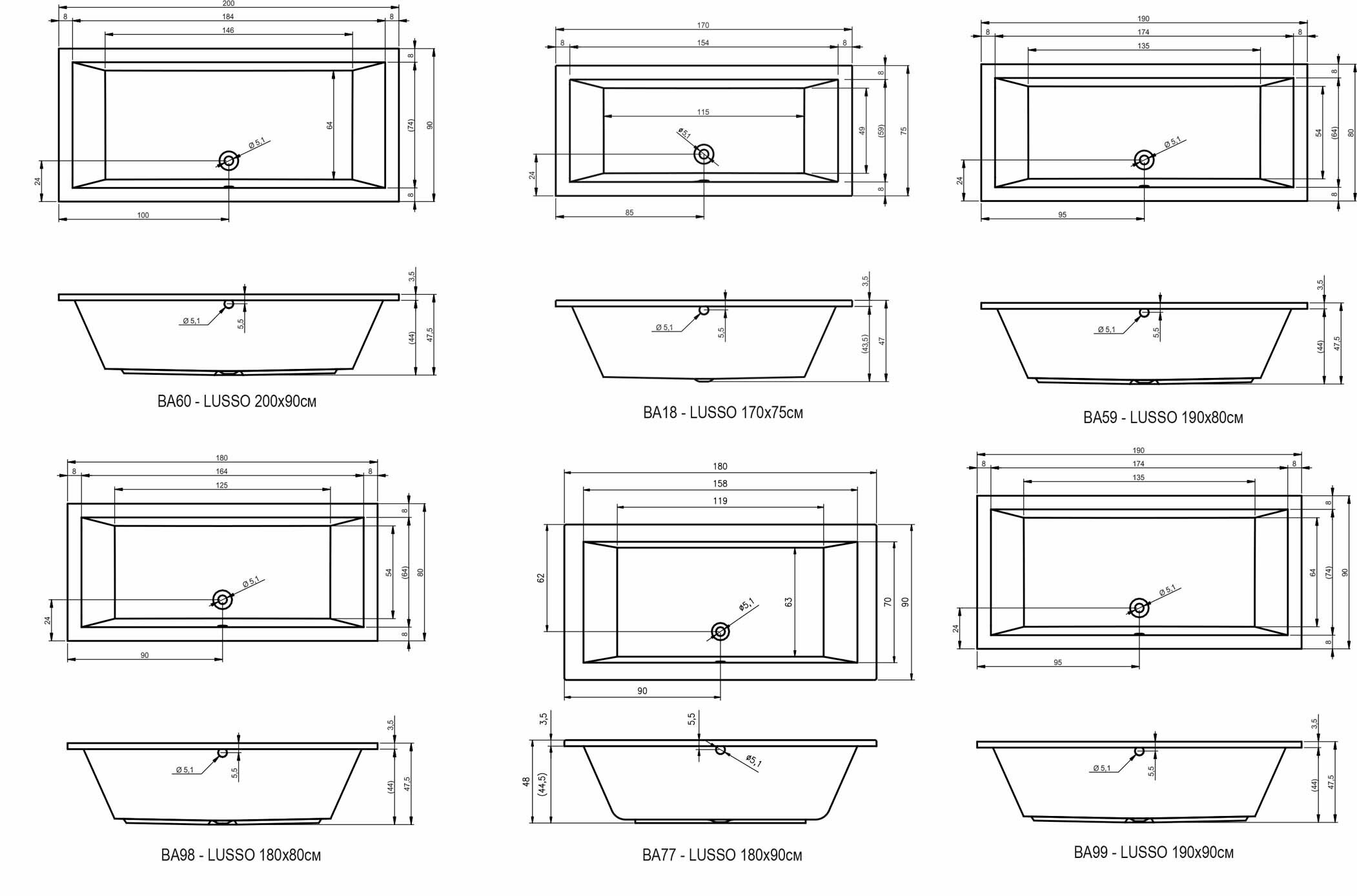Ванна RIHO LUSSO 170x75 BA1800500000000