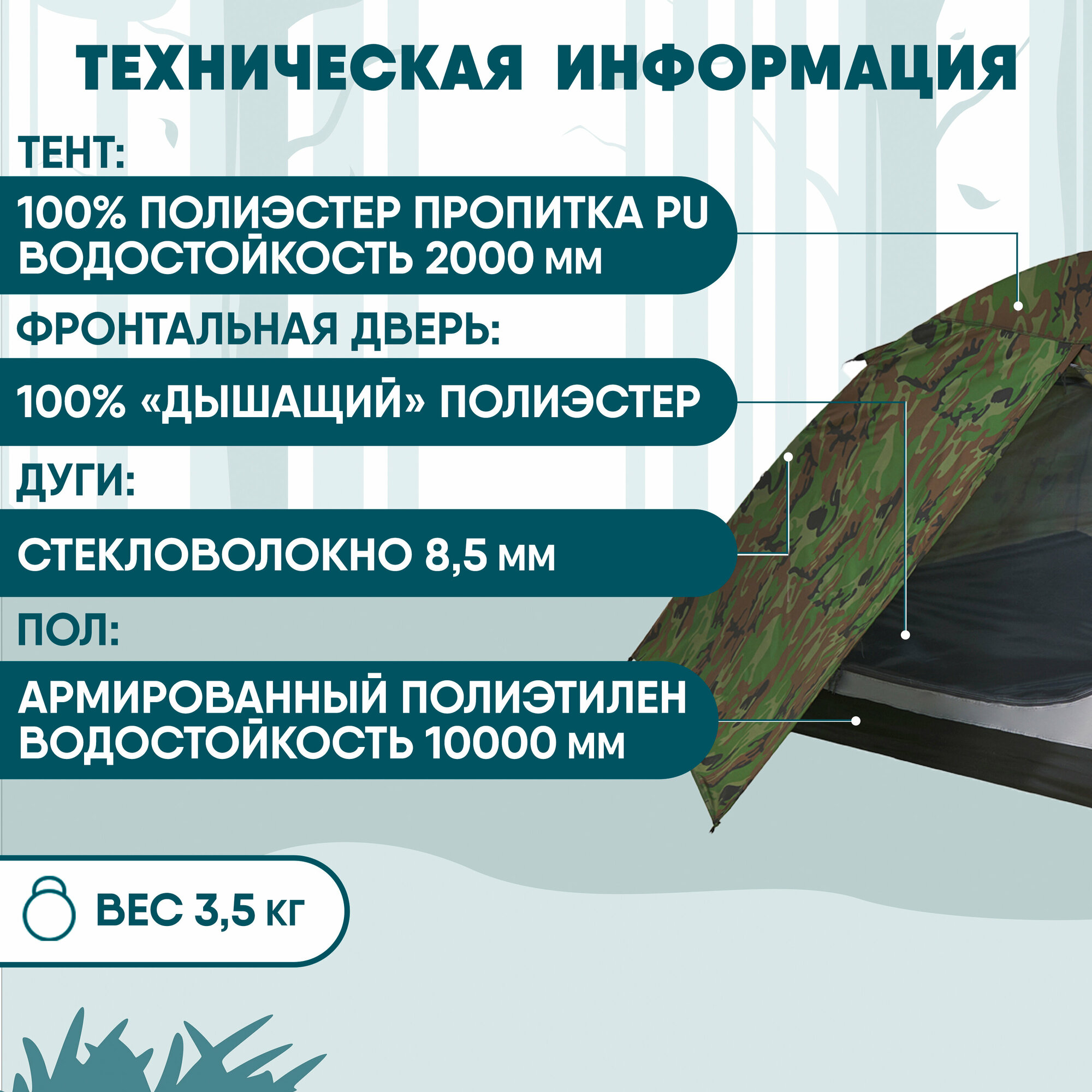 | Водостойкость тента | 2000 мм в.ст. |
