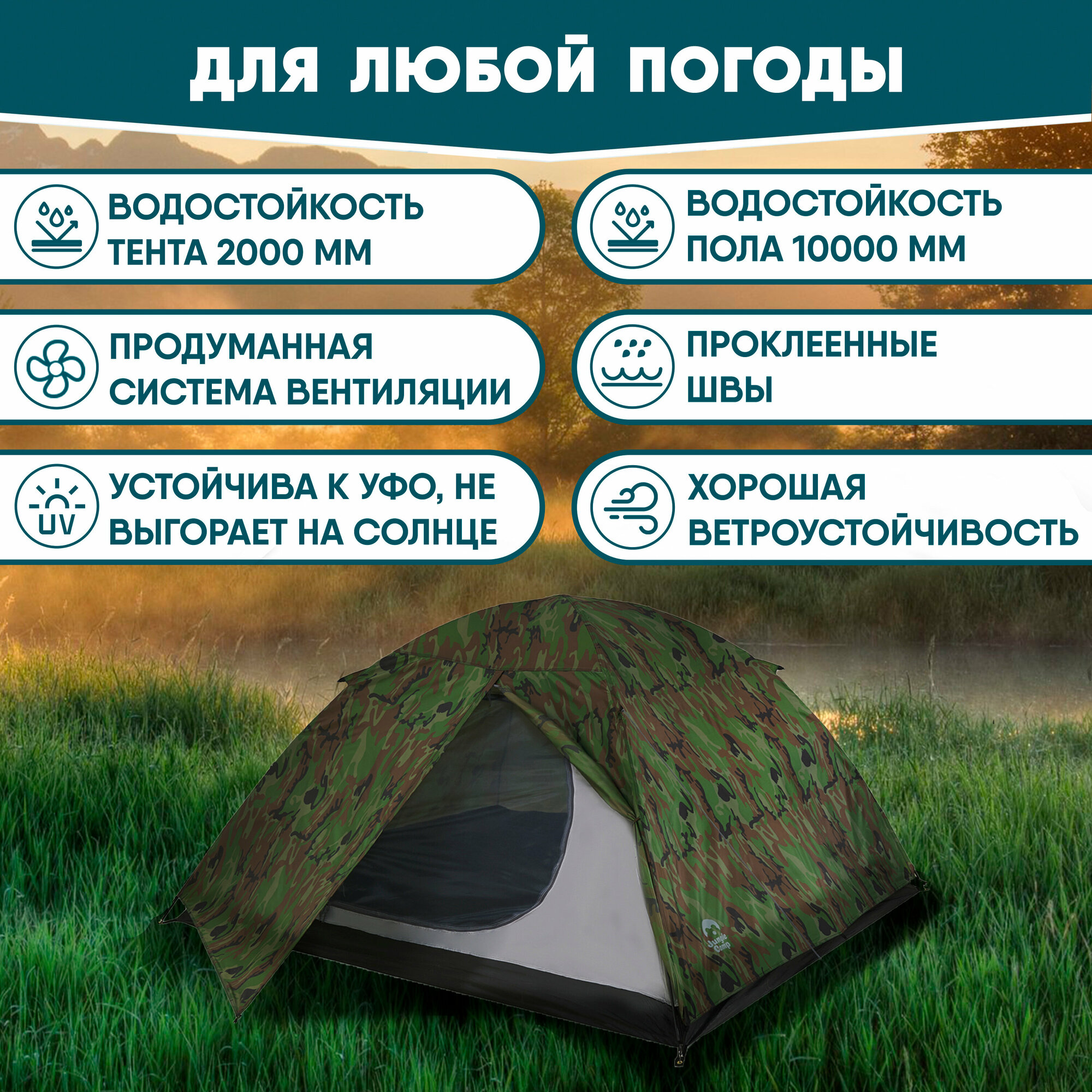 Палатка двухместная JUNGLE CAMP Alaska 4, цвет: камуфляж
