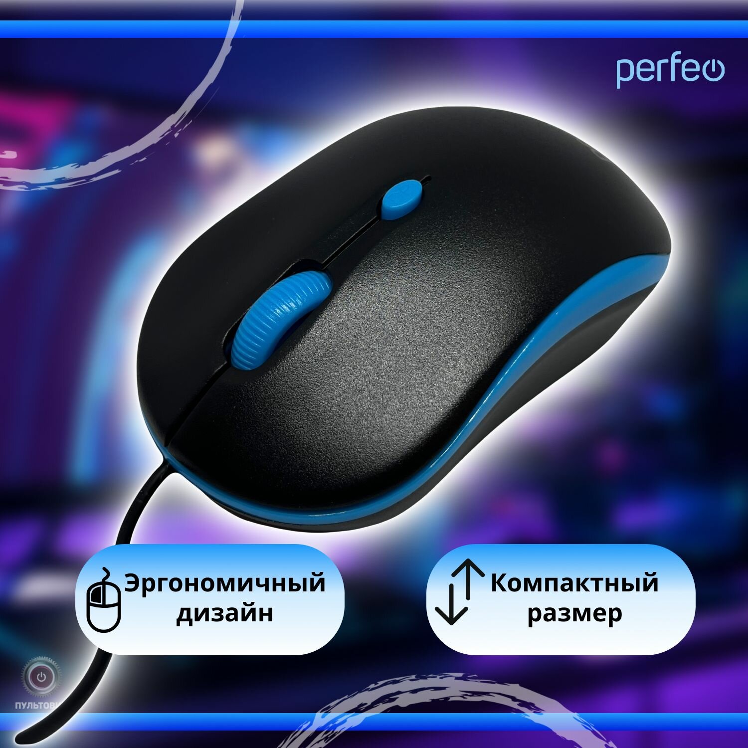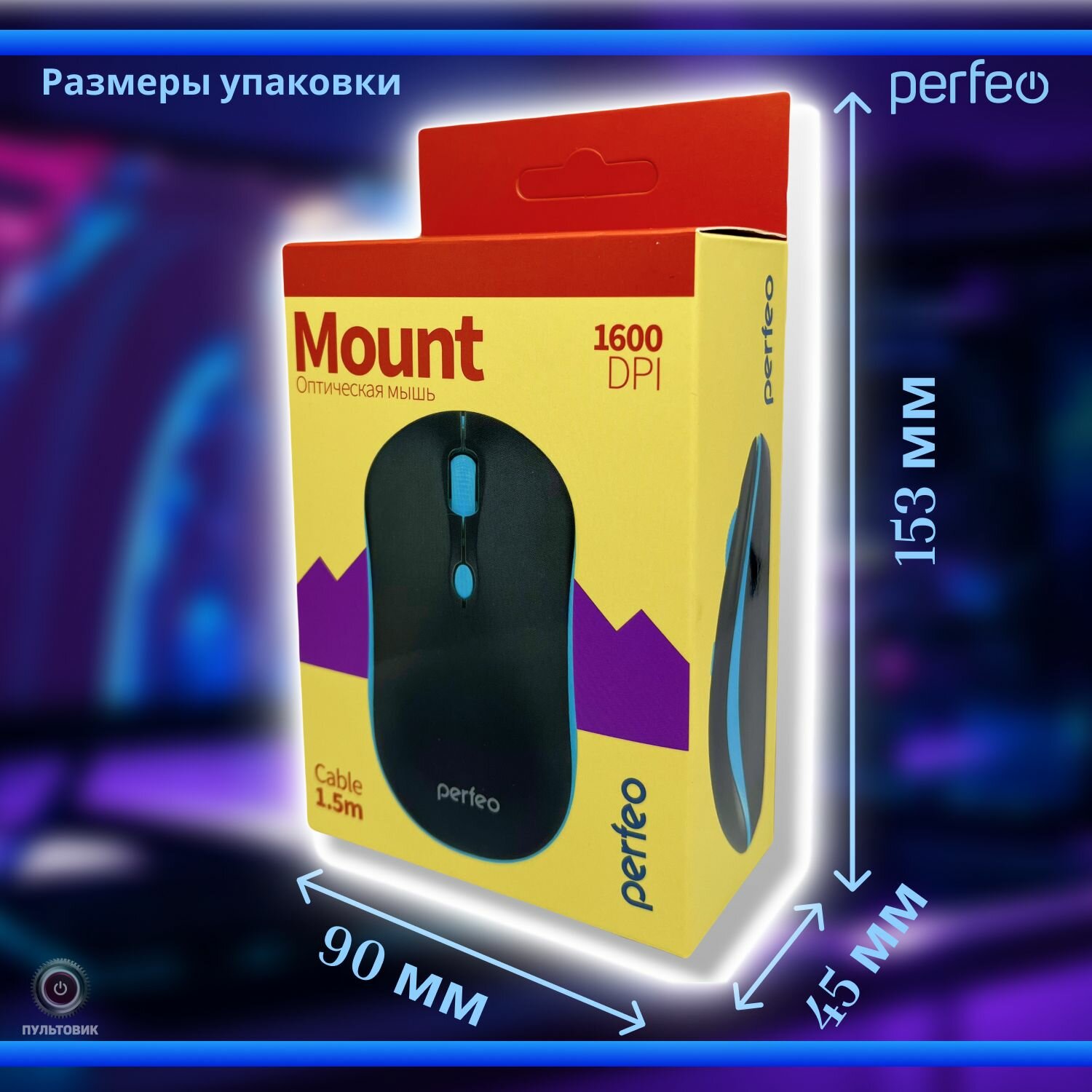 Мышь PERFEO PF-A4510 MOUNT проводная, оптическая, черный/голубой