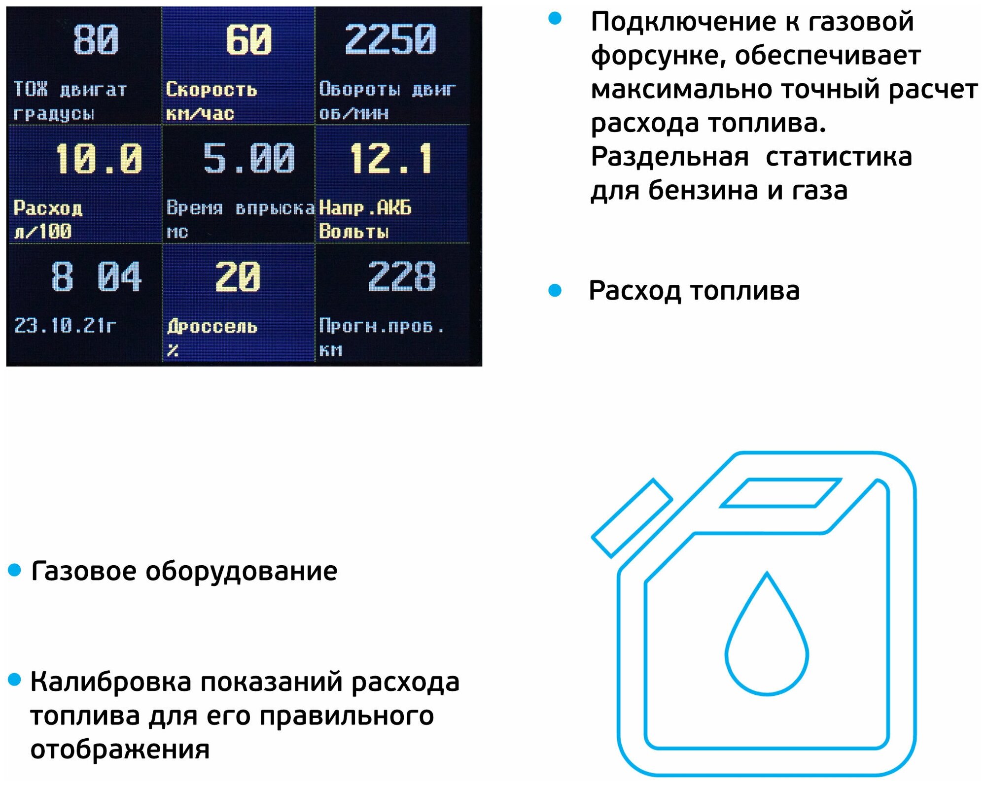 | Отображаемые параметры | обороты двигателя |