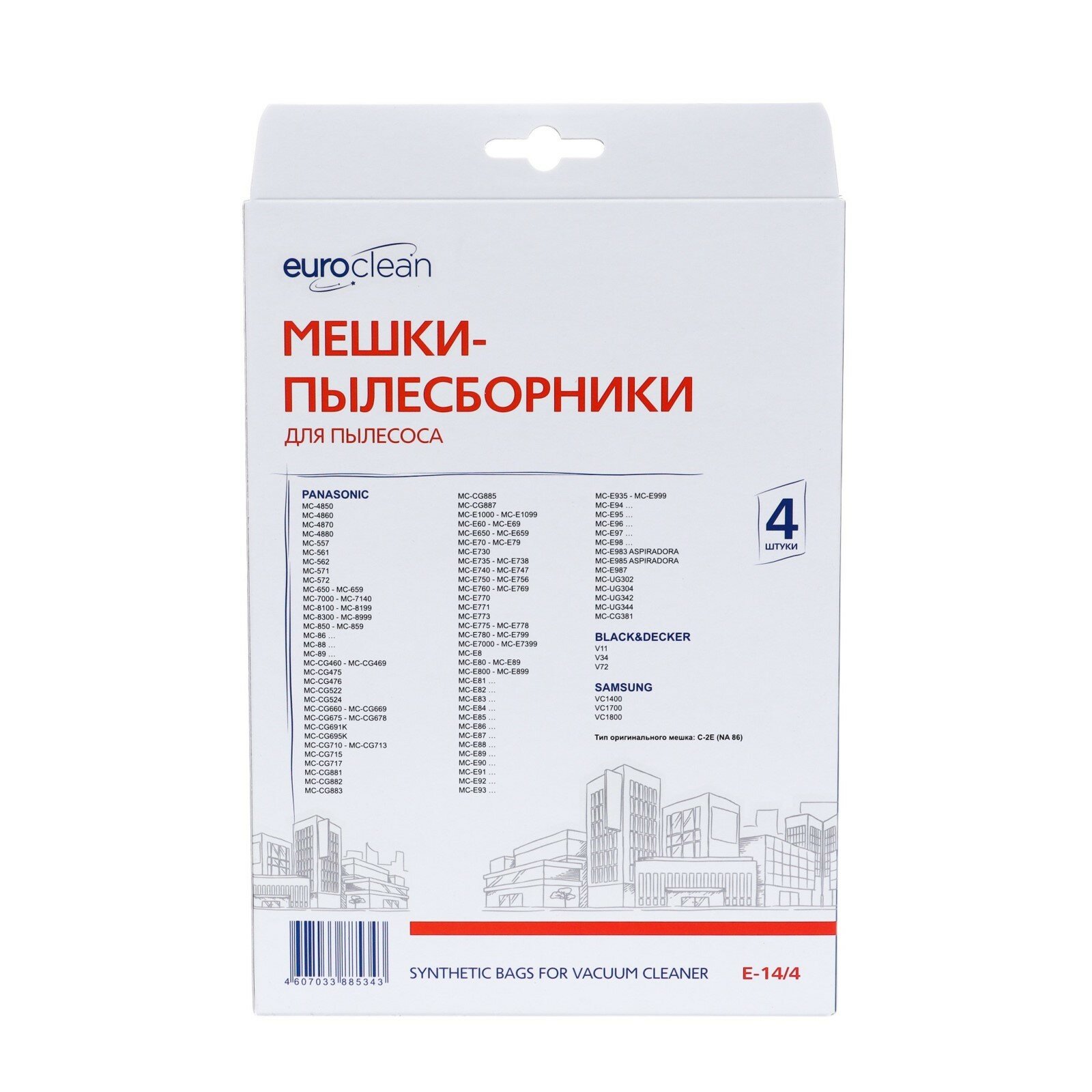 Купить Синтетические мешки-пылесборники Euroclean E-14, 4 шт., для пылесоса PANASONIC