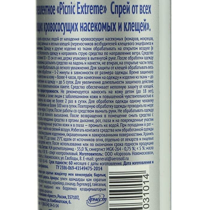 Арнест 31014 Спрей от всех видов летающих насекомых и клещей Picnic Extreme, 100 мл