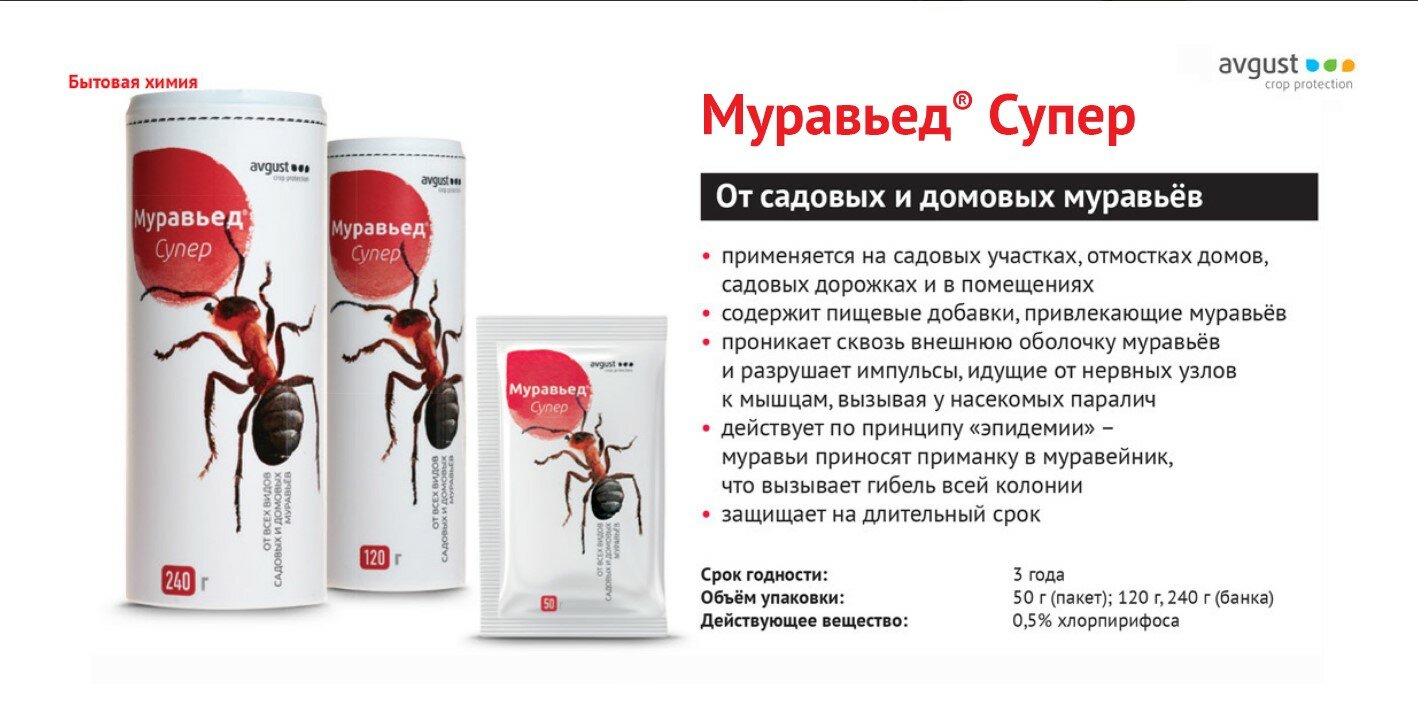 Ниже Вы можете прочитать отзывы на От муравьев Муравьед Супер 50гр. (хлорпирифос) Август, ознакомится с подробными характеристиками, посмотреть интересные обзоры и фотографии на От муравьев Муравьед Супер 50гр. (хлорпирифос) Август.