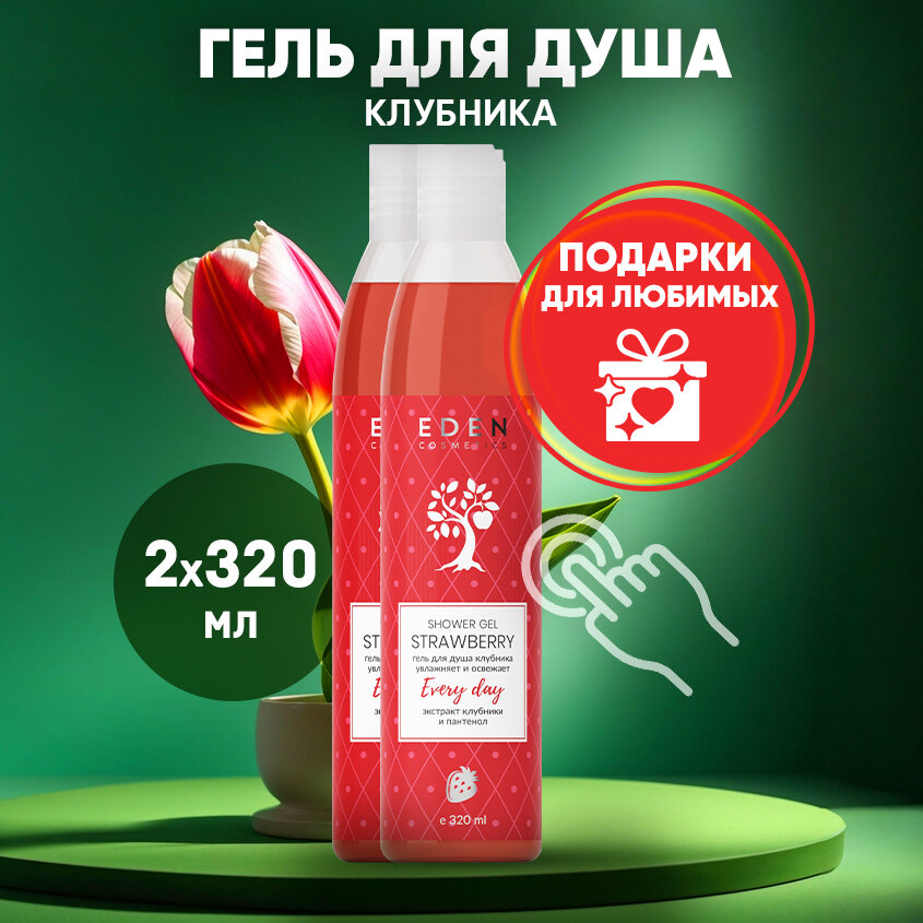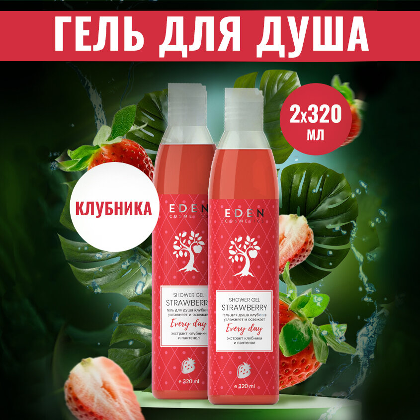Гель для душа EDEN увлажняющий Клубника 2 штуки по 320 мл интересное: