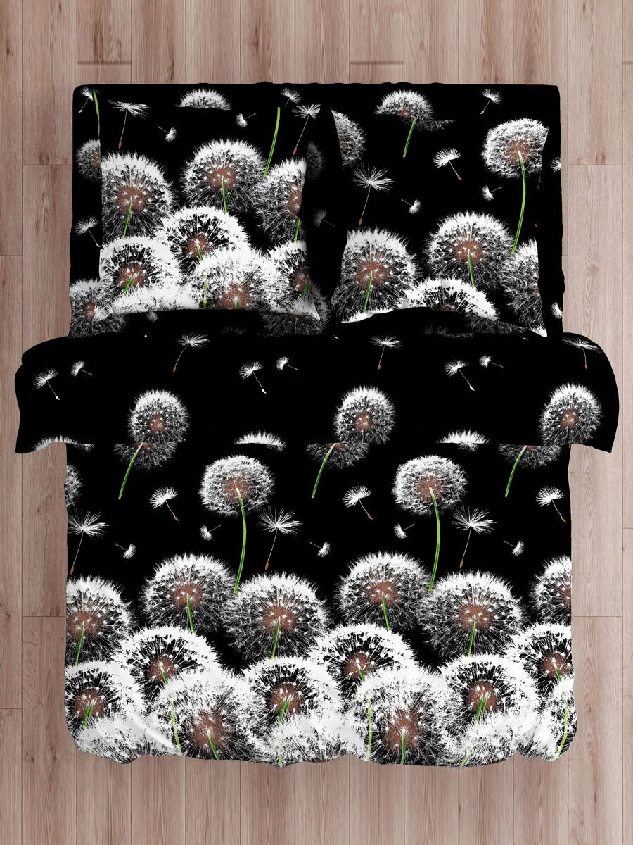Комплект постельного белья Василиса Белые одуванчики, 2-спальное, хлопок, черный/белый