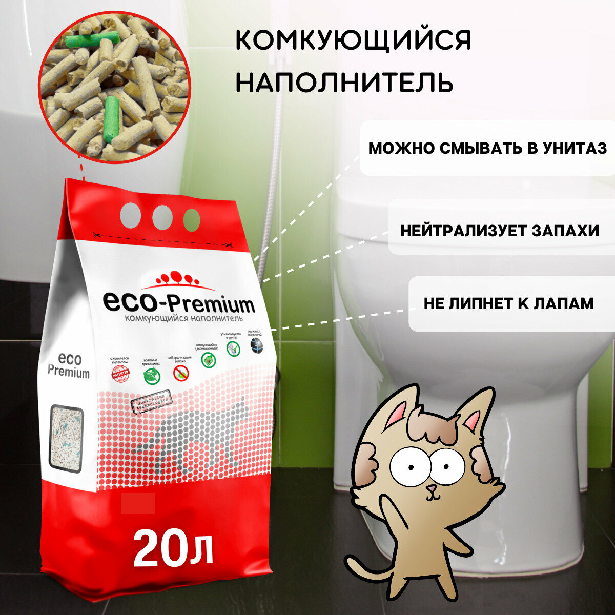 Купить Eco-Premium Green древесный комкующийся наполнитель для туалета кошек без запаха 20л