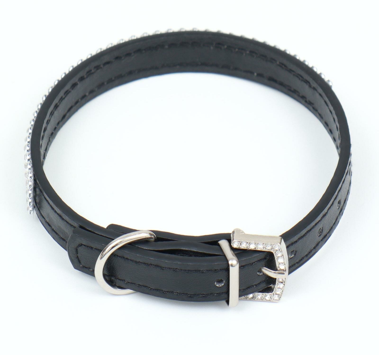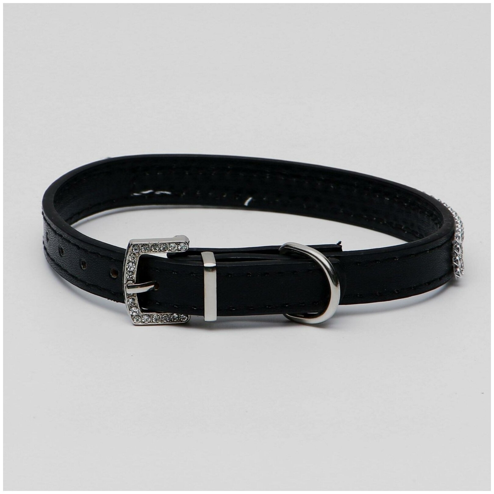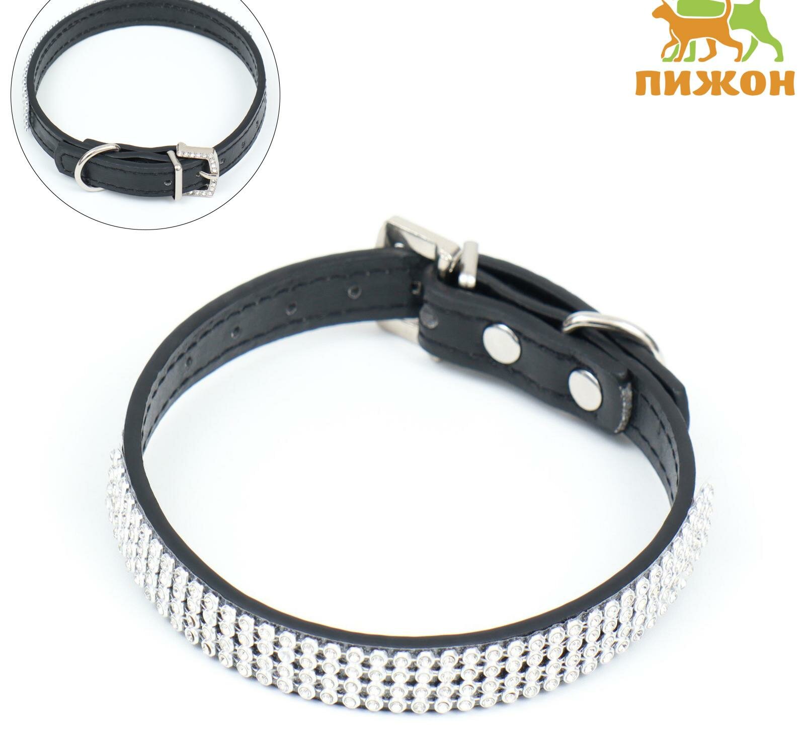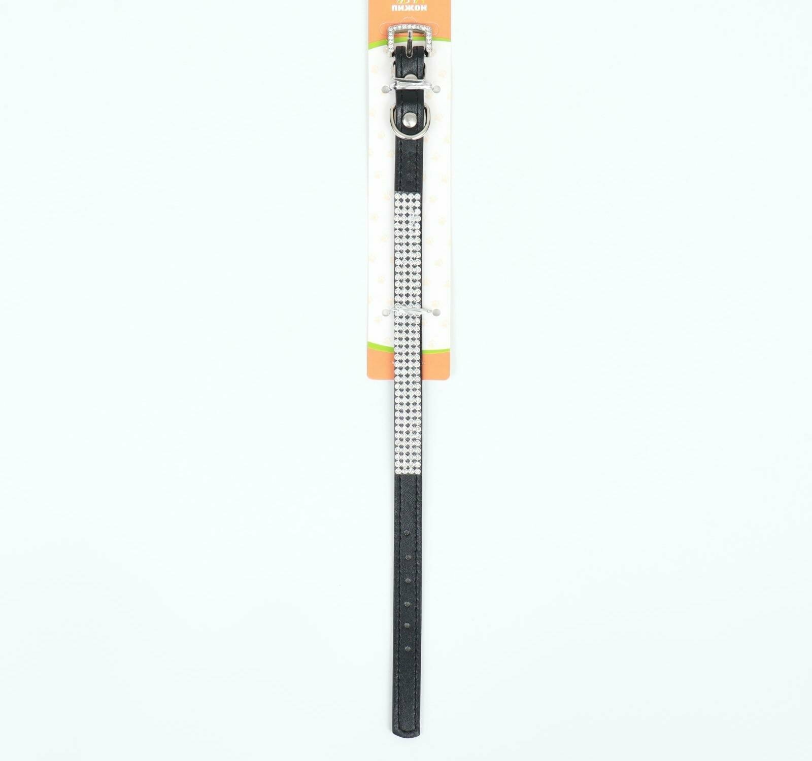 Ошейник для собак Пижон со стразами в 4 ряда и стразы на пряжке, 40х1,5 см, черный