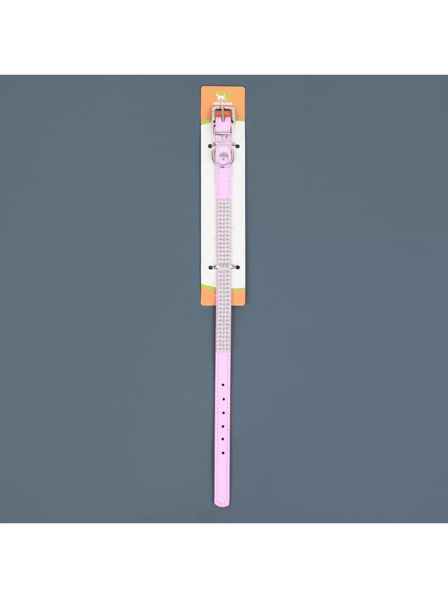 Ошейник со стразами для собак в 4 ряда и стразы на пряжке, 40 х 1,5 см, розовый 1039619