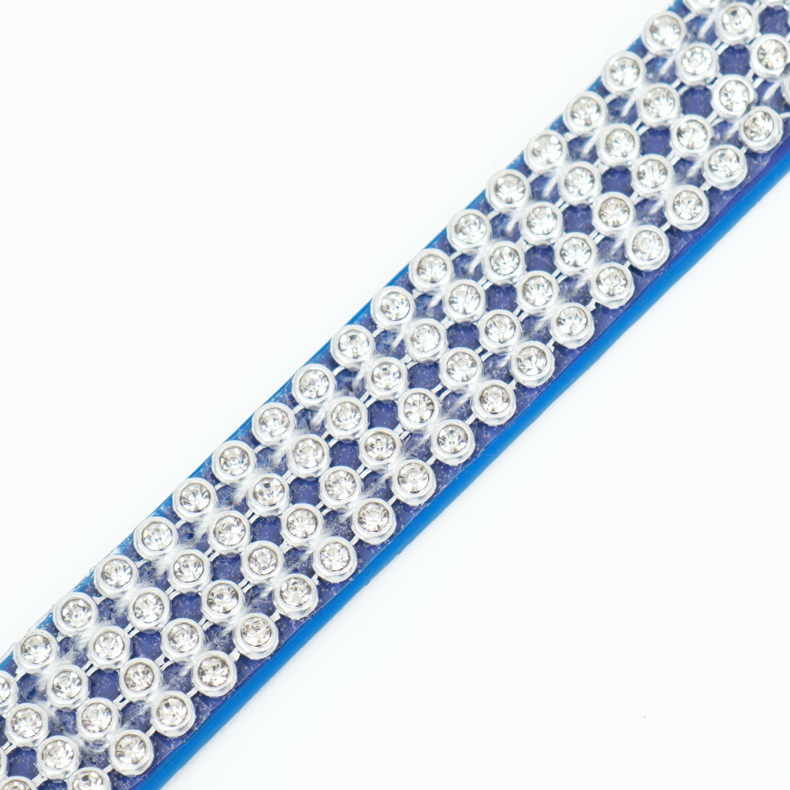 Ошейник со стразами в 4 ряда и стразы на пряжке, 40*1,5 см, синий