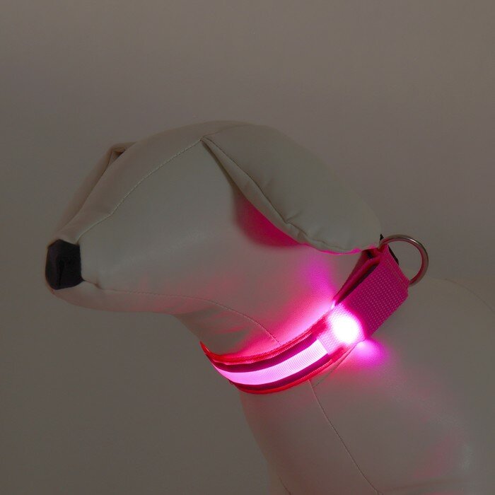 Купить Ошейник с подсветкой Двойная полоса размер S, ОШ 35-43 х 2,5 см 3 режима свечения розовый