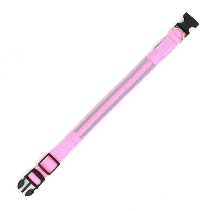 Светящийся ошейник со светоотражателем, 38-40 см, Розовый