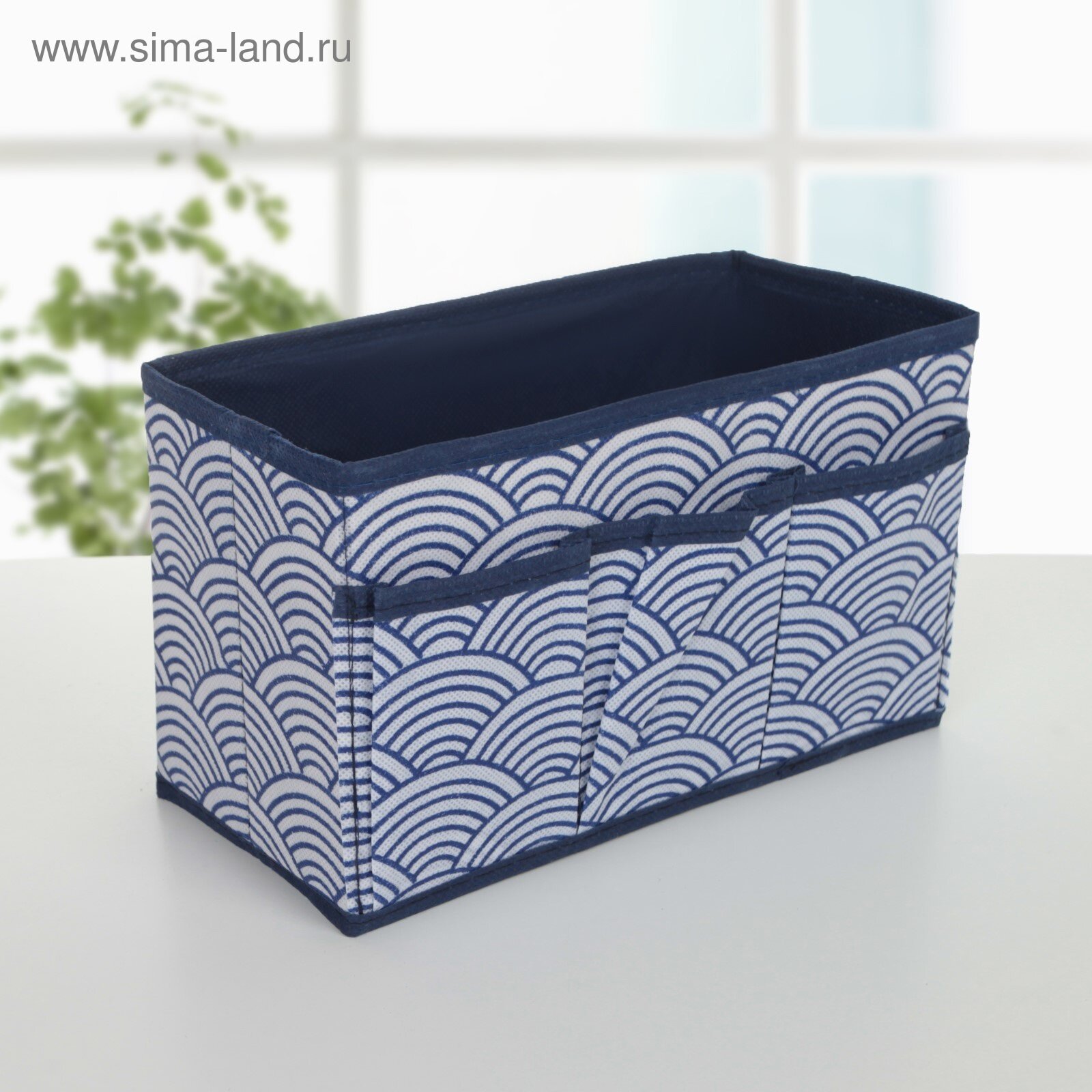 Бокс для мелочей Доляна «Волна», 3 кармана, 25×15×12 см, цвет синий, материал флизелин