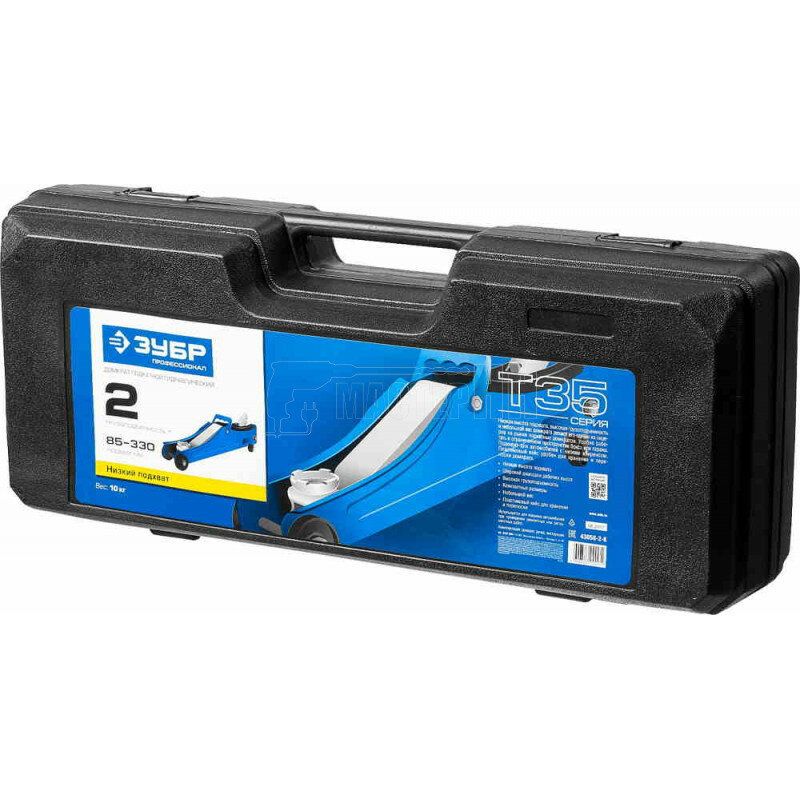 Домкрат гидравлический подкатной ЗУБР T35 43056-2-K, 85-330 мм, 2т, кейс