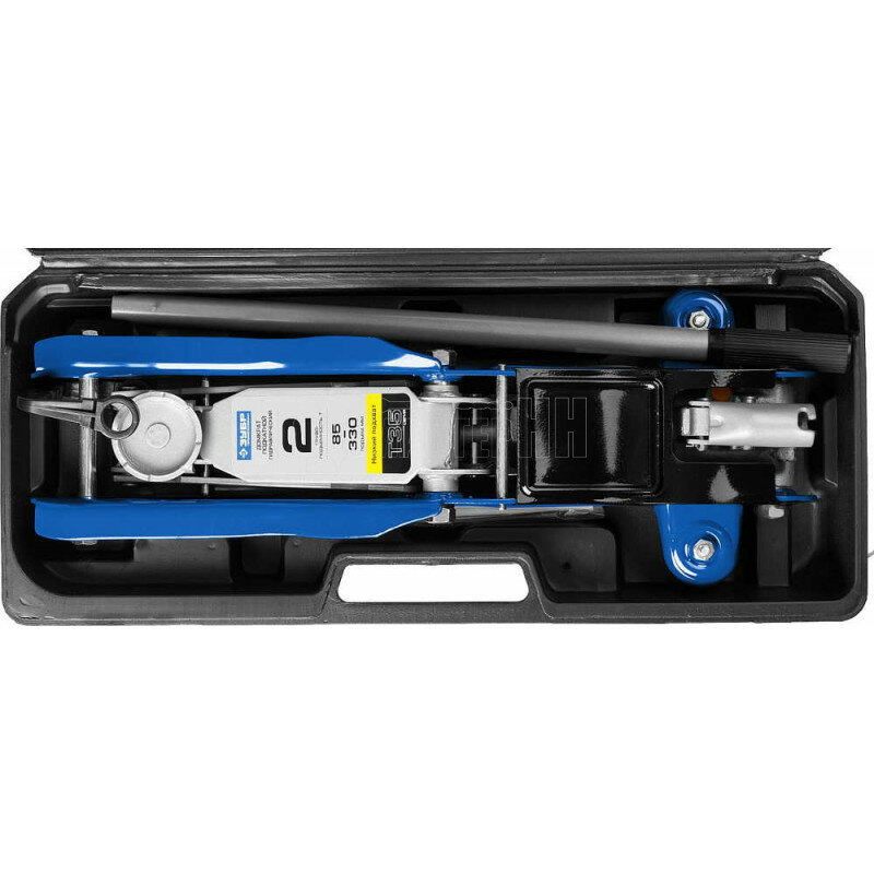 Домкрат подкатной гидравлический ЗУБР T35 43056-2-K (2 т) синий