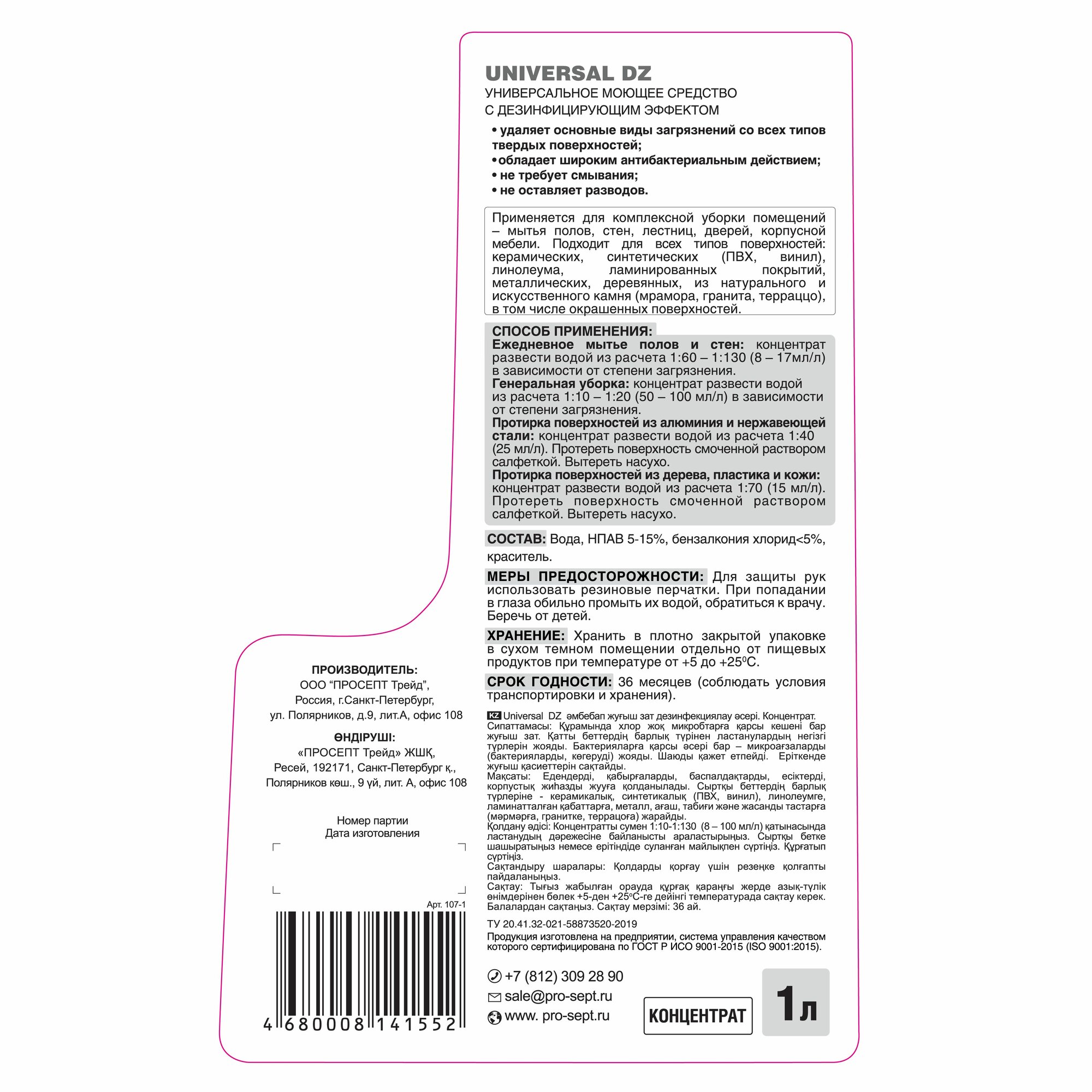 Универсальное чистящее средство Universal DZ с атимикробным эффектом концентрат 1 литр