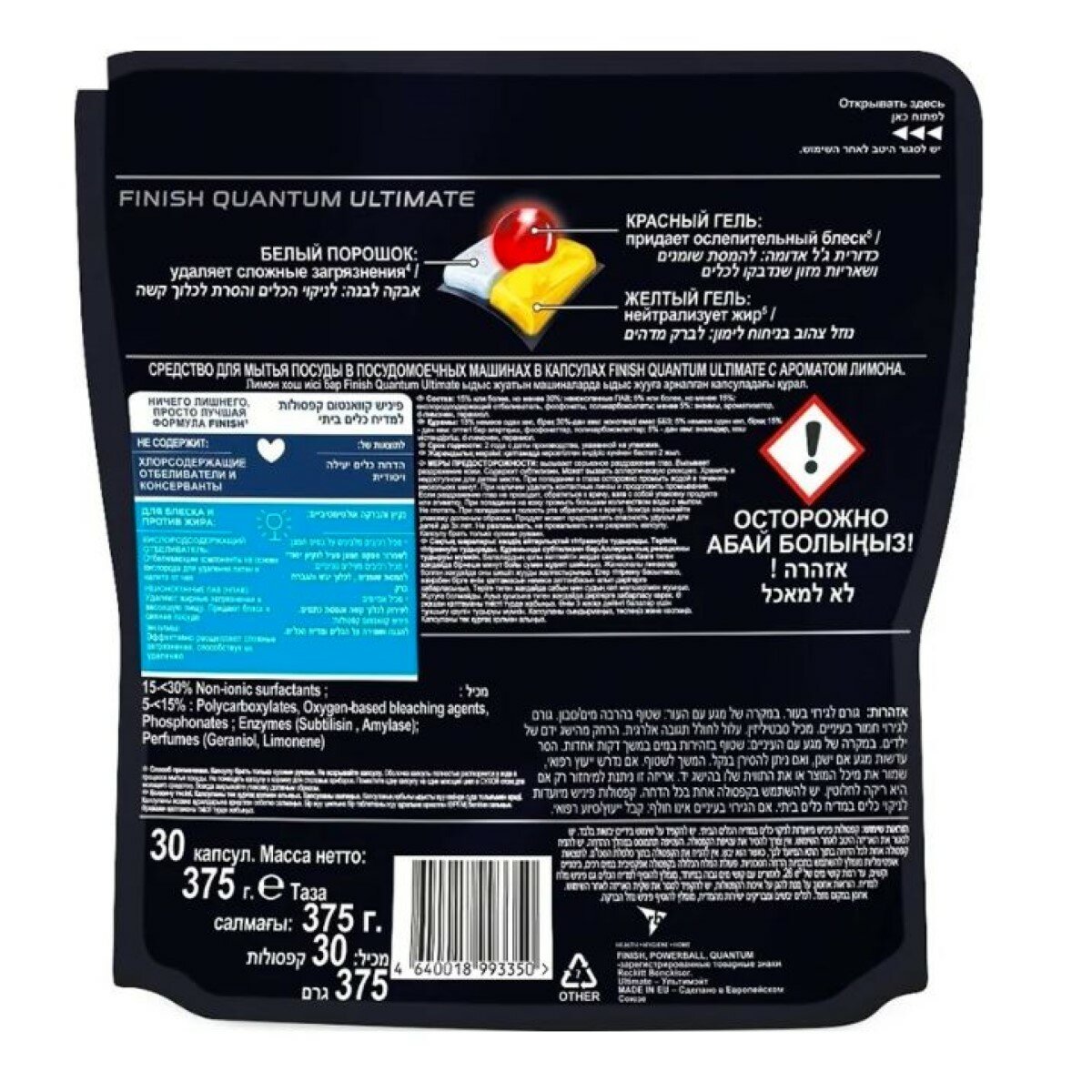 Капсулы для посудомоечных машин Finish Quantum Ultimate, Лимон, 30 шт, дойпак, бесфосфатные
