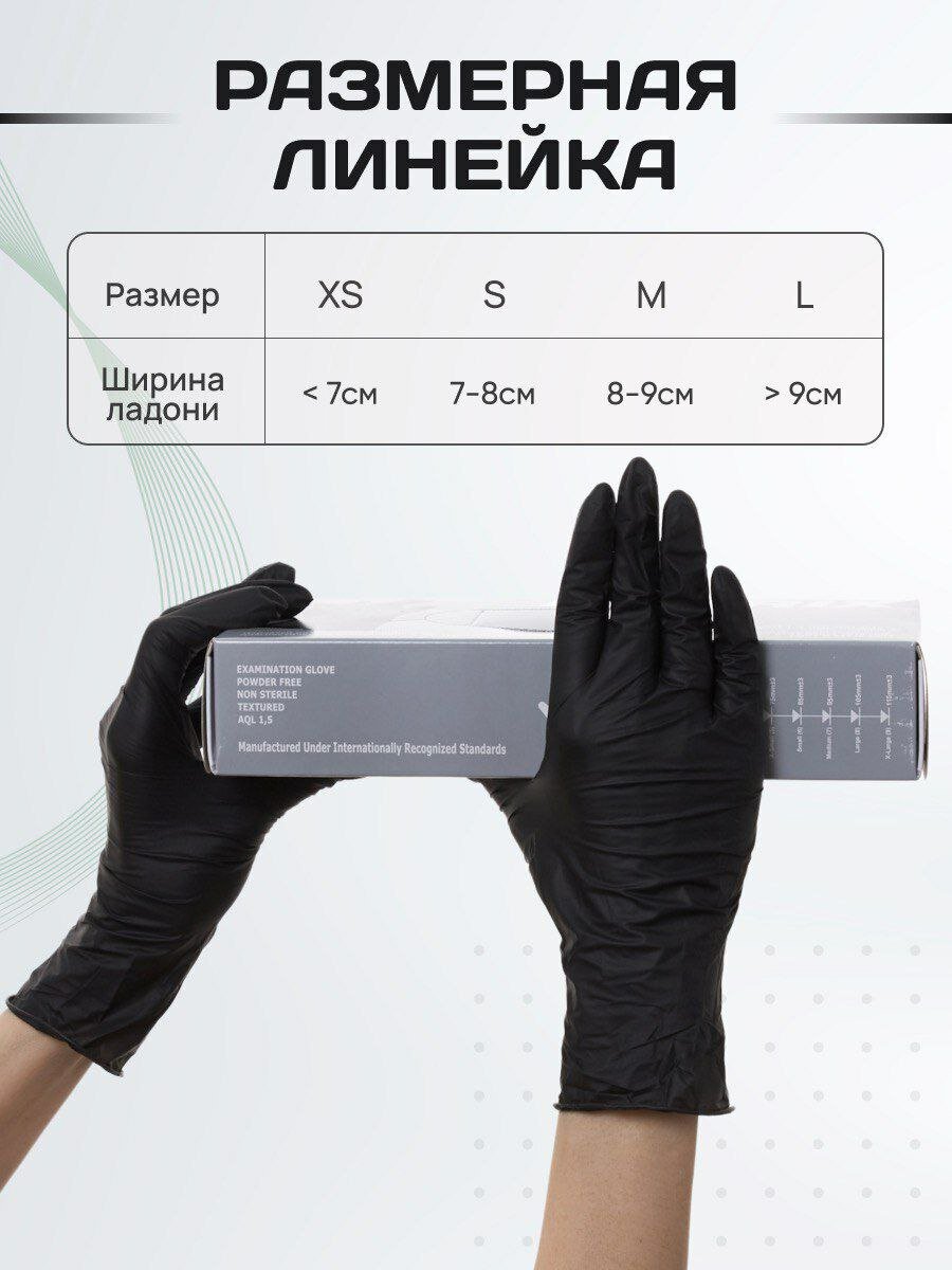 Перчатки нитриловые одноразовые 100 штук/50 пар, черные XS