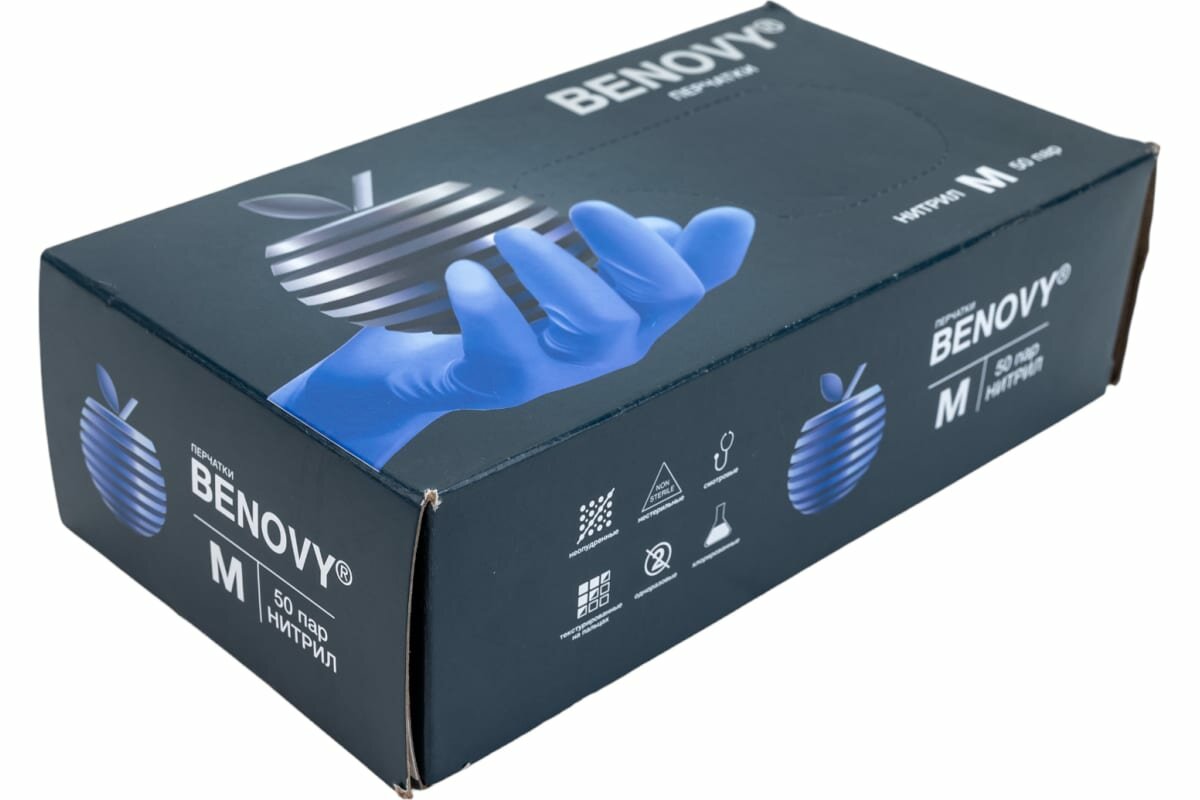 BENOVY Перчатки нитриловые одноразовые, медицинские, хозяйственные, косметологические, кулинарные, голубые, размер M, упаковка 50 пар