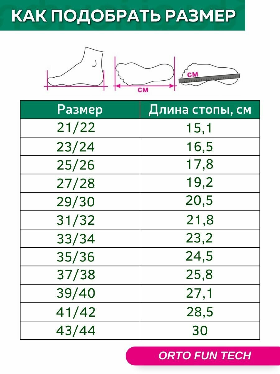 Детские ортопедические стельки ORTO Fun Tech, размер 21/22, длина стопы 14 см