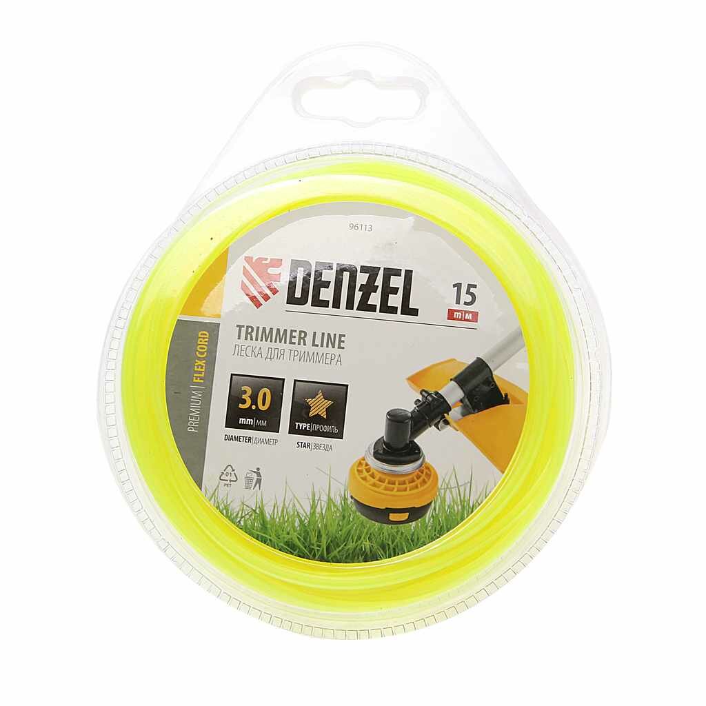 DENZEL 96113 Леска для триммера, звезда 3 мм x15 м, блистер Flexcord Denzel 96113