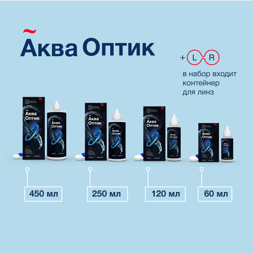 АкваОптик, раствор многофункциональный для ухода за контактными линзами, 120мл (с контейнером для ли