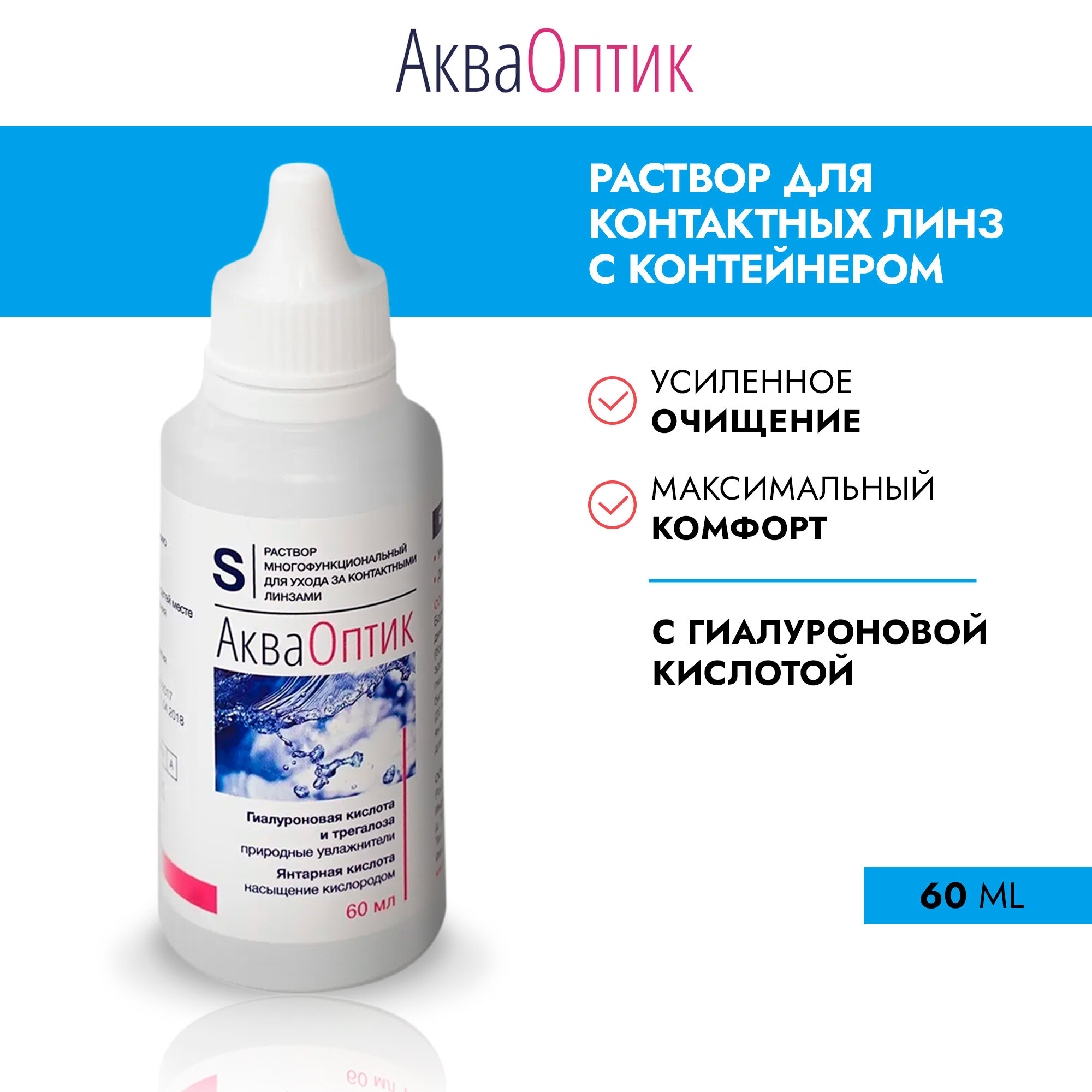 Раствор для контактных линз АкваОптик для ежедневного ухода, 60 мл (с контейнером для линз)