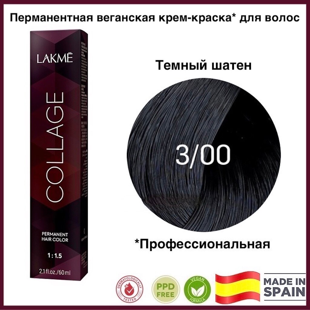 Купить Lakme перманентная крем-краска Collage, 3/00 темный шатен, 60 мл