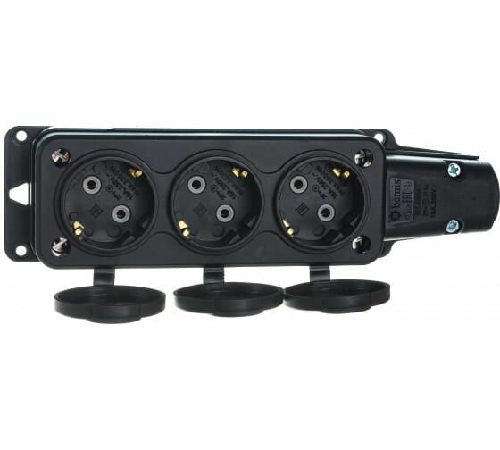 Электротовары прочее BEMIS Колодка BEMIS BK1-1402-2613/3613 3 гнезда с з/к и крышкой каучуковая 220В 16А, IP54, чёрная