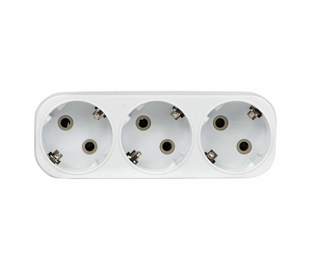 Тройник для розетки электрический с заземлением 16А, белый