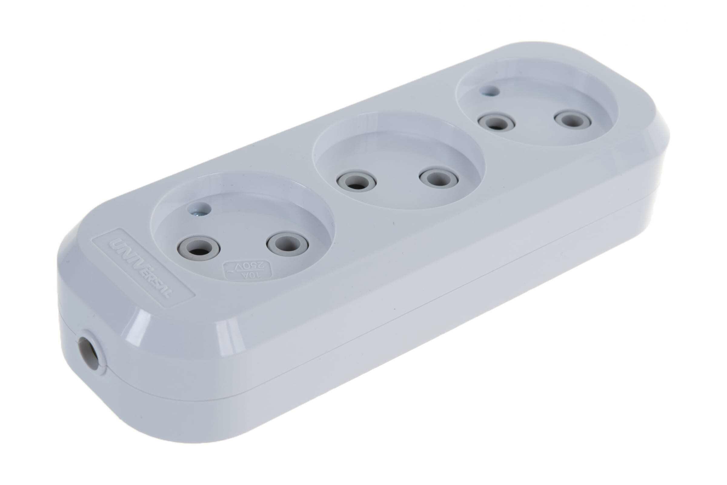 Electrical outlet / Розетка-колодка 3 поста наружная без заземления ABS-пластик UNIVersal E203