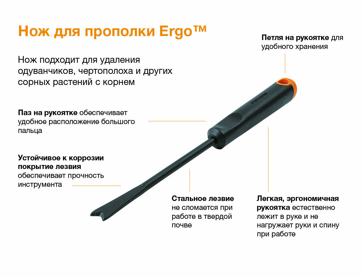 Нож для прополки Fiskars Ergo интересное: