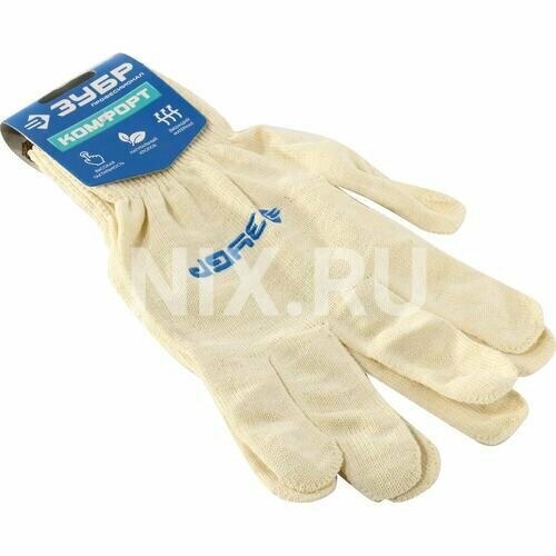 Трикотажные перчатки ЗУБР комфорт, без покрытия, х/б 13 класс, размер L-XL
