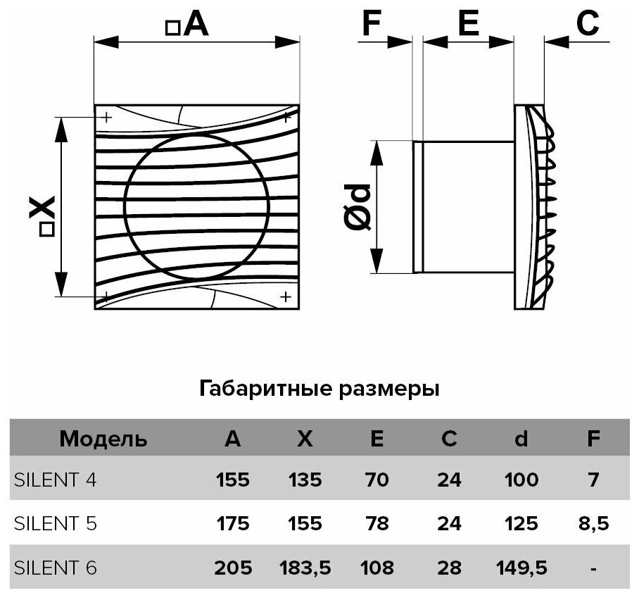 Вентилятор осевой вытяжной SILENT 4C, с обратным клапаном D 100