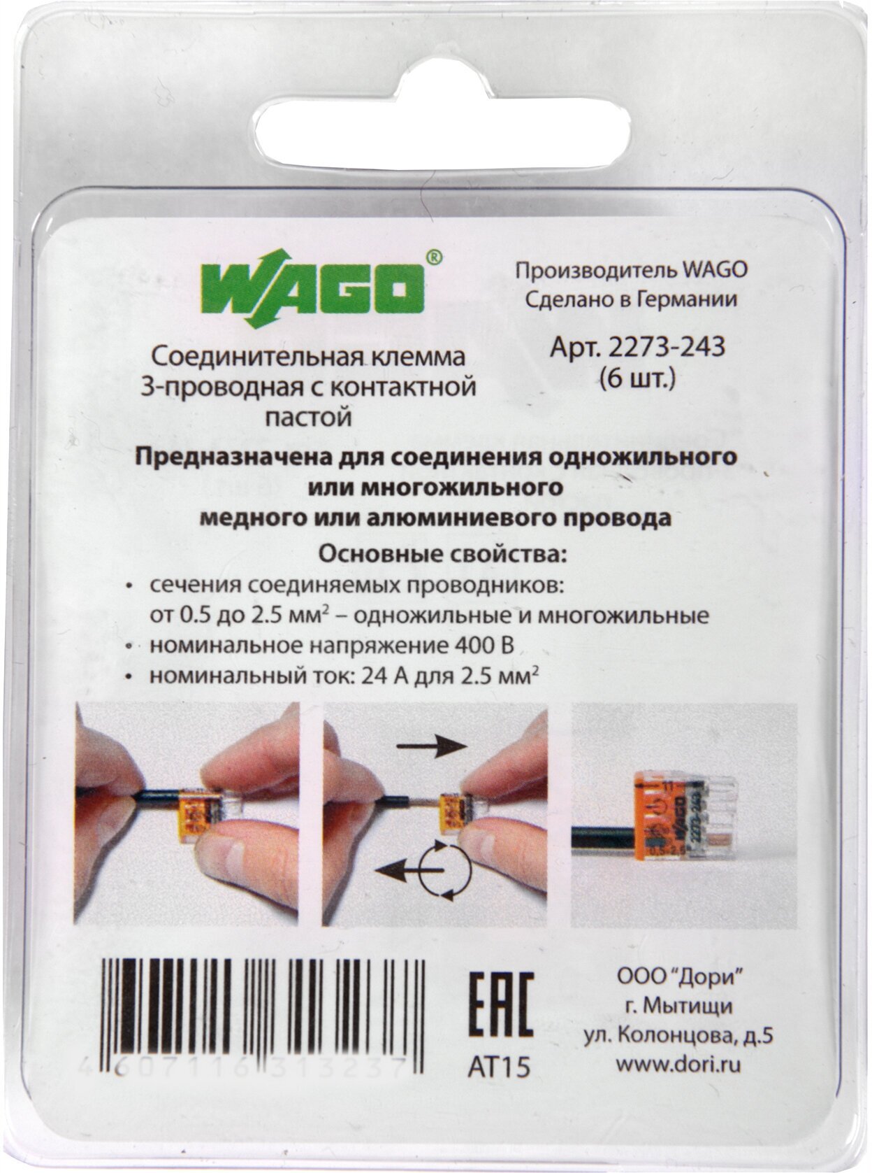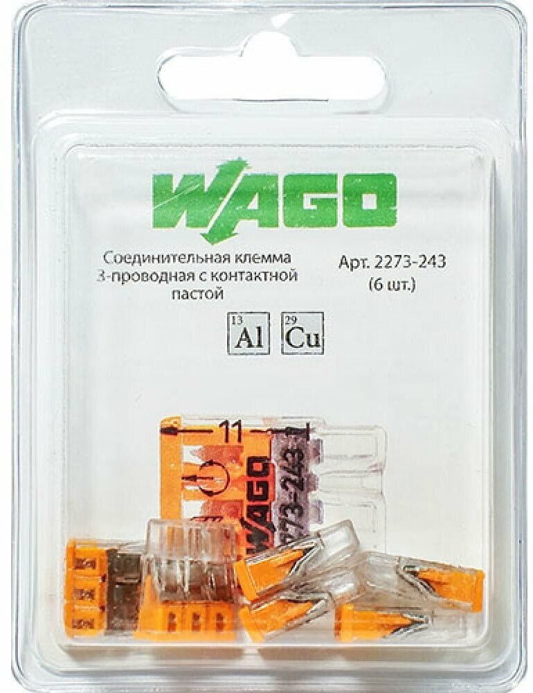 Клемма "WAGO" 2273-243 / 6 шт. с пастой