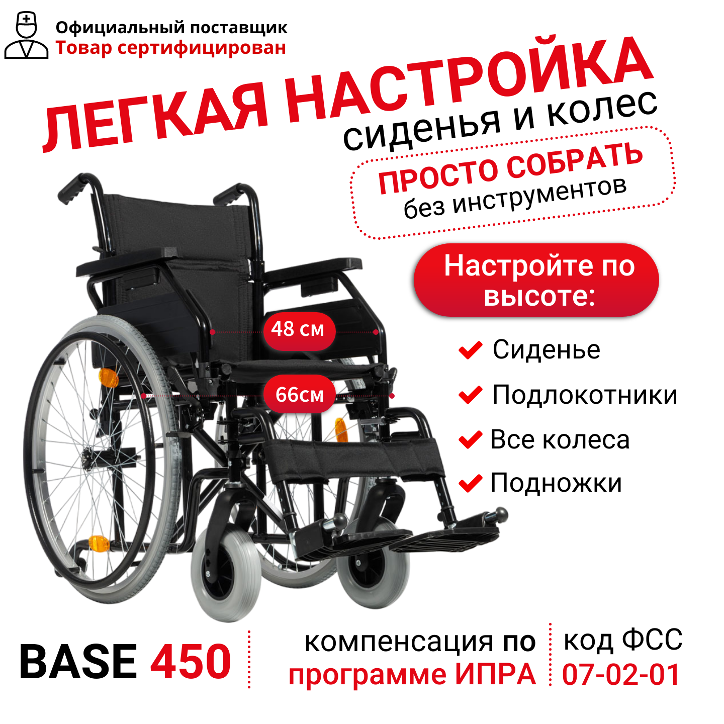 Инвалидная коляска Ortonica Base 450 (Olvia 10) для взрослых и инвалидов, ширина 46 см