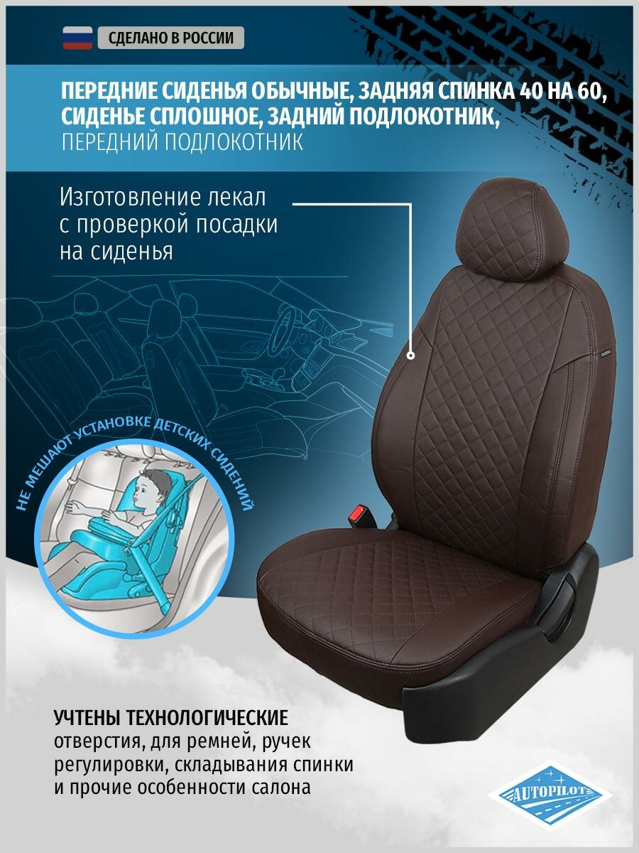 Модельные авточехлы АВТОПИЛОТ для Volkswagen Jetta VI (2011-2018гг), экокожа ромб, темно-коричневые