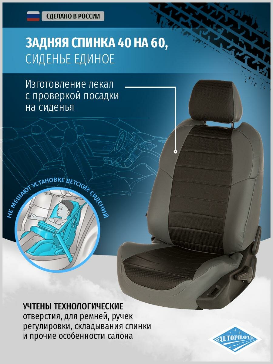 Комплект чехлов АВТОПИЛОТ из экокожи для Chevrolet Cruze, черный/темно-серый