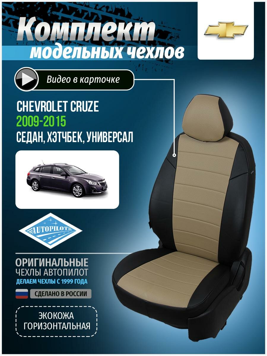 Чехлы на автомобильные сидения Автопилот для Chevrolet Cruze Sd/Hb/Wag с 09-15г. (Экокожа, Черный + Бежевый)